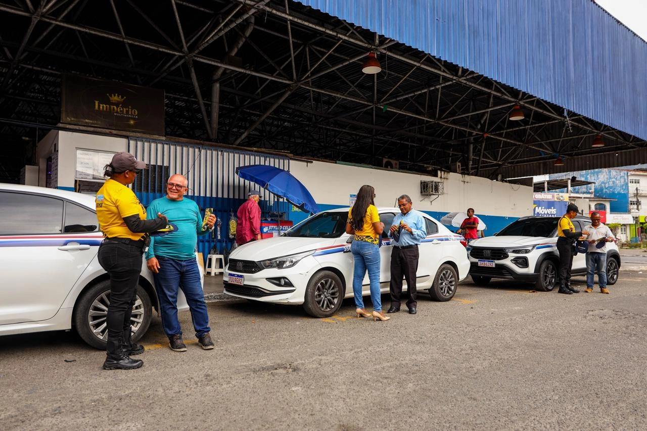 A atividade aconteceu na Praça Irmã Dulce e Dr. Gualberto, onde taxistas foram abordados em uma blitz educativa. Durante a ação, os motoristas receberam materiais informativos que incentivam a gentileza e a obediência às normas de trânsito.