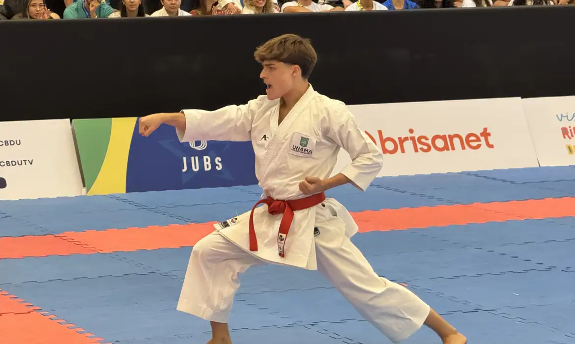 Os mais de 1.500 quilômetros que separam Belém (Pará) de Natal (Rio Grande do Norte) não foram obstáculo para a família do carateca Péricles Souza Sobrinho, de 18 anos. O estudante do segundo período de nutrição da Unama trouxe a torcida de casa para sua estreia nos Jogos Universitários Brasileiros (Jubs) e deu certo. Péricles começou a competição ganhando a prata no kata individual e ainda vai disputar outra medalha no kumite na categoria até 67 quilos. “Claro que o primeiro lugar é o que a gente sempre quer, mas eu estou muito feliz com o resultado. Eu admito que eu dei o melhor, na final foi uma disputa de medalha muito boa”, declarou.
