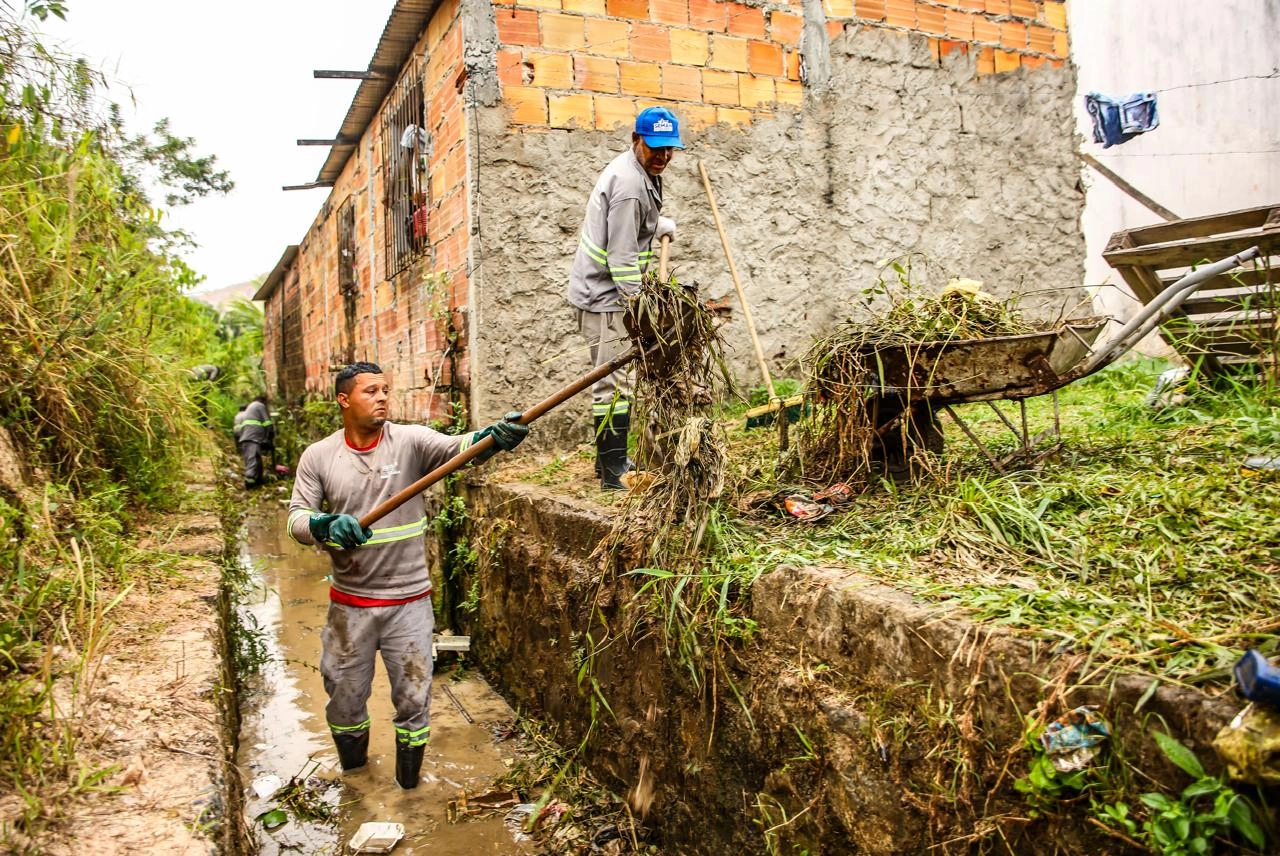 Os serviços foram intensificados desde a semana passada, após a Defesa Civil alertar que o município deve registrar chuvas intensas, com acumulados que podem ultrapassar 110 mm e chegar a até 220 mm em algumas localidades.