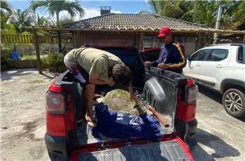 Ação conjunta entre SESC, SEDUMAM e Projeto Tamar garante o salvamento e transporte seguro do animal.