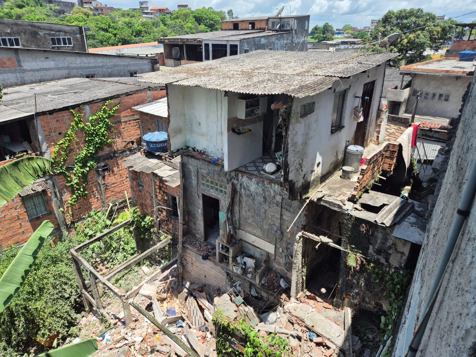 Uma casa abandonada desabou na manhã desta sexta-feira na Rua das Fontes, em Candeias. O imóvel estava fechado há cerca de oito meses e já apresentava sinais estruturais severos, incluindo estalos e rachaduras, motivo pelo qual foi interditado pela Defesa Civil na semana passada, que recebeu um pedido de vistoria por causa de um forte estalo vindo da estrutura. Após a avaliação técnica, o órgão interditou o imóvel imediatamente e solicitou o desligamento da energia elétrica para evitar riscos adicionais.