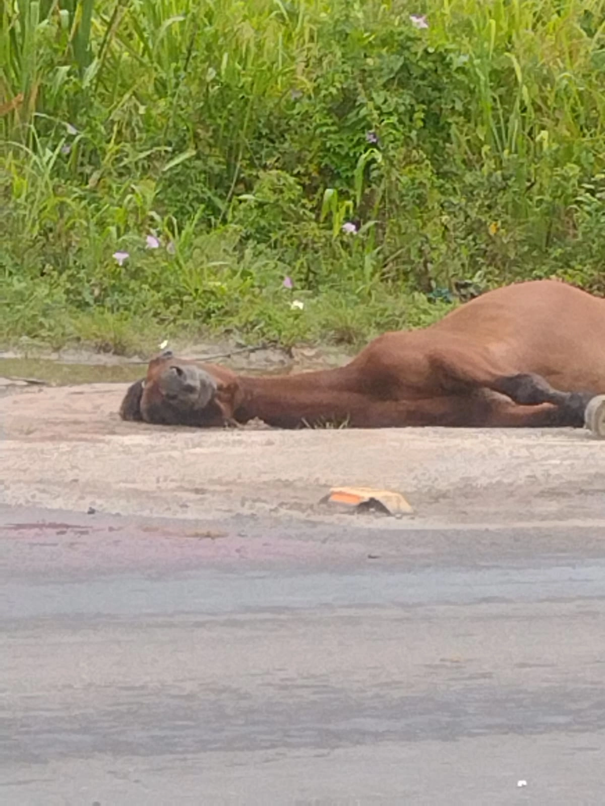 A estrada da morte em parceria com os governantes fez mais uma vítima para enriquecer as estatisticas ,daqui uns dias será esquecido e fica por isso mesmo e está tudo bem ,como todos os que morreram desta mesma forma ,por causa da falta de responsabilidade desses criadores de animais de grande porte e também da inércia do poder público municipal ,federal e estadual que se dizem representantes do povo ,mas nada fazem ,ou seja não representa muito bem ,não cuidam do bem estar do povo que confiou dando-lhe o voto de confiança na esperança de mudança onde possa viver com dignidade e no direito de ir e vir com segurança.