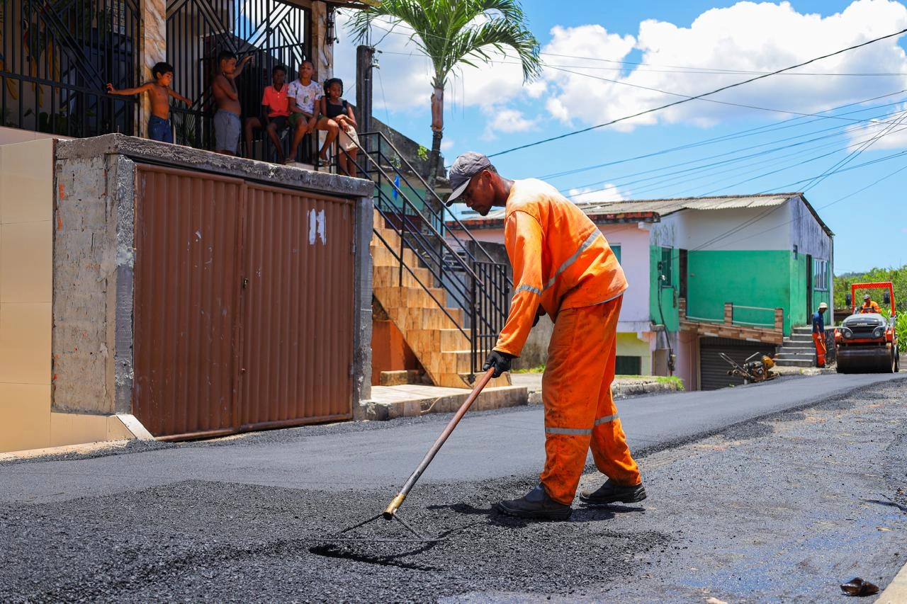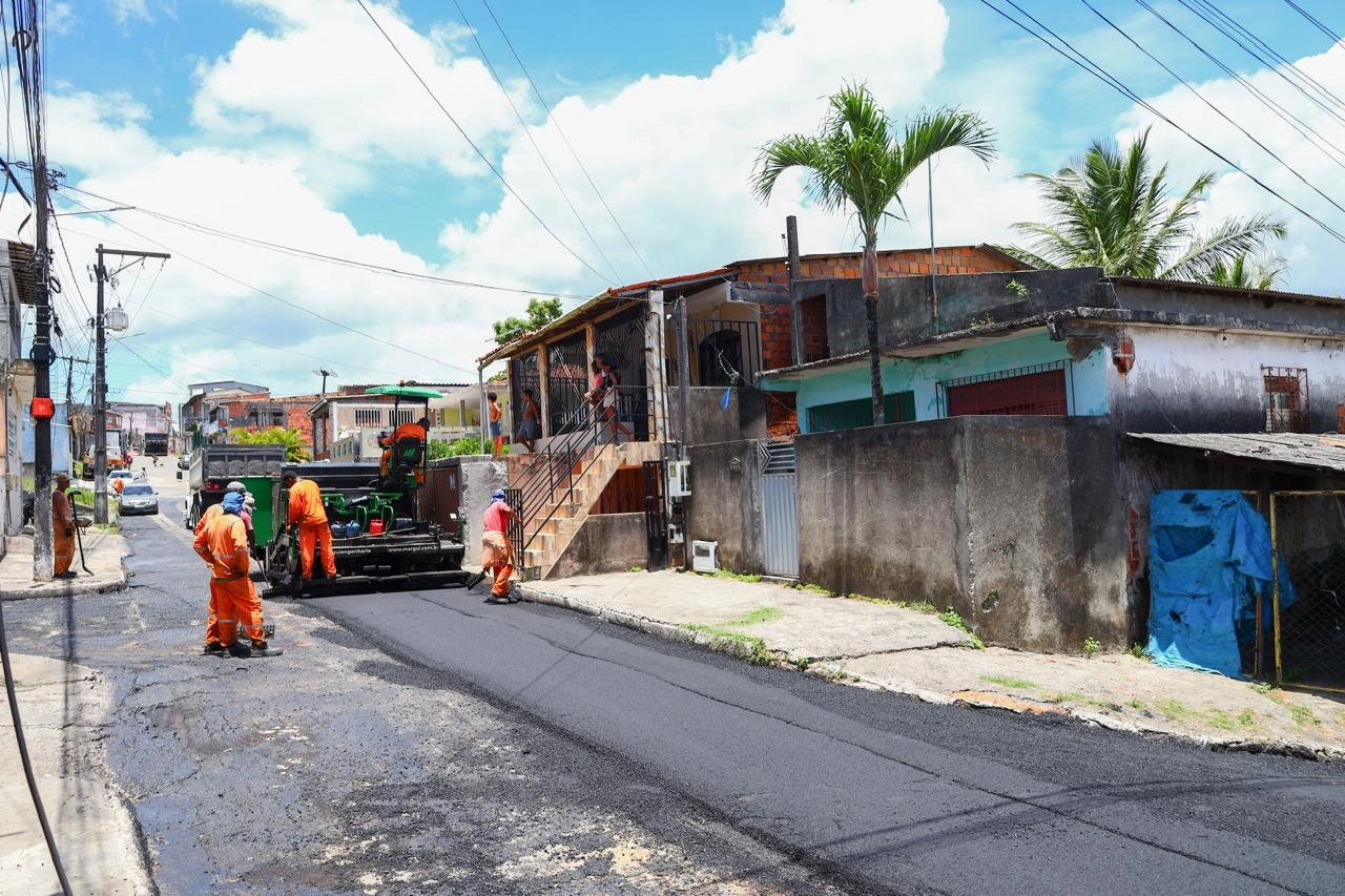 O programa “Asfalta Candeias”, realizado pela Prefeitura, chegou a mais uma localidade do município.