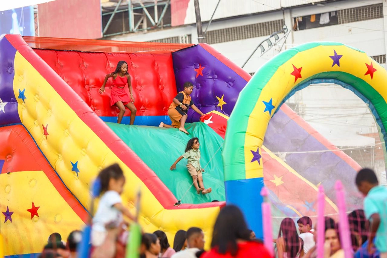 O local se transformou em um verdadeiro parque de diversão. Brinquedos infláveis, camas elásticas, pula-pula, guerra de cotonetes, escorrega gigante, trenzinho da alegria e futebol de sabão fizeram a alegria de centenas de crianças.