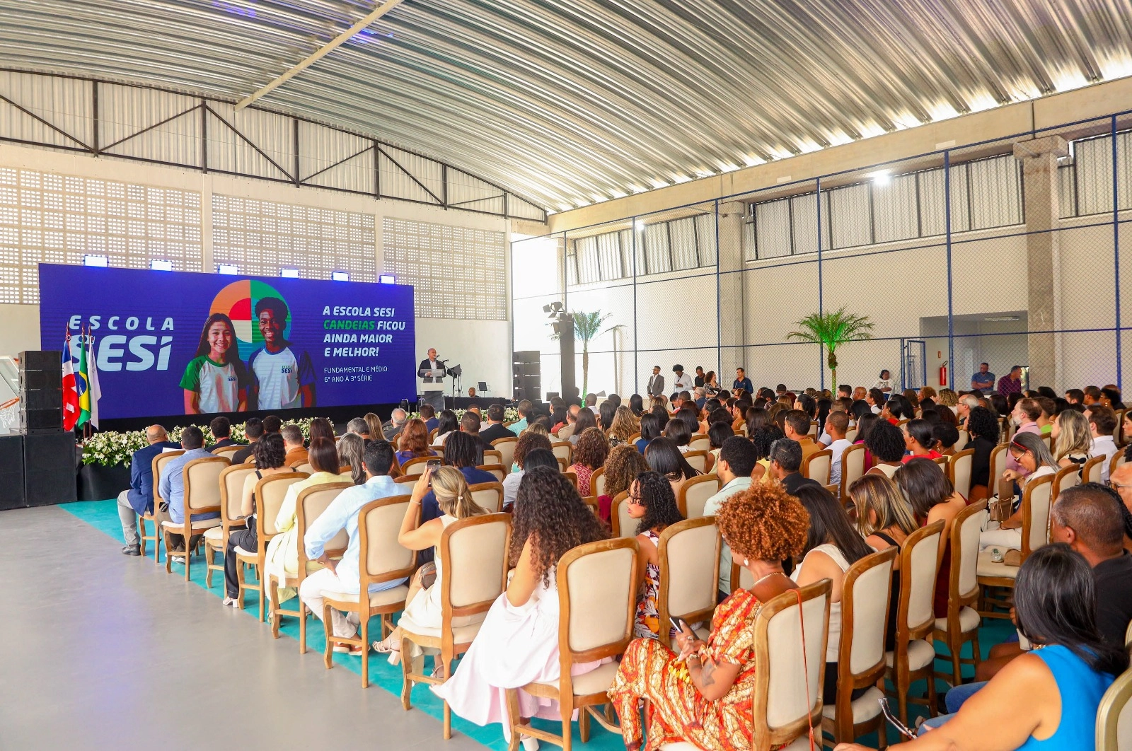 Numa cerimônia de gala que reuniu a alta cúpula do Sistema FIEB e agentes políticos de Candeias, a exemplo do prefeito Eriton Ramos, vereadores, secretários e pessoas ligadas à educação, foi inaugurada na manhã desta quinta-feira (11), a nova unidade da escola Sesi Manuel Querino.